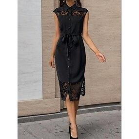 Femmes Robe Midi Robe noire Robe en Dentelle Robe de Cocktail Robe de Cérémonie Élégant Occasionnel Rue Date Coupe Ample Uni Demi Manches Col de chemise Bleu Noir Rose Claire Été Printemps