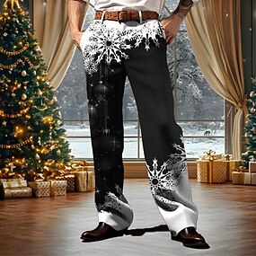 Noël Homme Motif de flocon de neige Chaussettes Pantalon de survêtement en polaire Taille élastique à cordon Occasionnel Extérieur Maison Tenue de soirée Avec Poches Thermique Hiver Impression 3D
