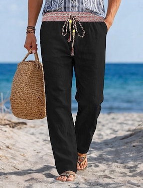 Homme Pantalon en lin Pantalon pantalon été Pantalon de plage Boutons Poche Cordon Plein Confort Respirable Vacances du quotidien Plage Hawaïen Bohème Noir Blanche