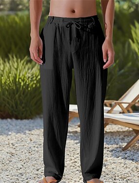 Homme Pantalons en Lin Pantalons Dress Pants works Pantalon d'été Pantalons de Plage Jambe Droite Uni Confort Extérieur Occasionnel Quotidien Streetwear Élégant Noir Blanche