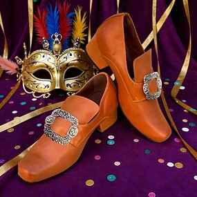 Chaussures à bout carré pour hommes de Mardi Gras avec boucle antique décorative style rétro talon bloc ajustement confortable pour le carnaval et les événements festifs