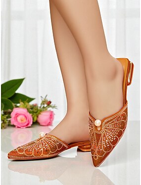Mules à strass dorés pour femmes avec détails en perles - chaussures à bout pointu glamour à enfiler pour la vie nocturne et les cocktails