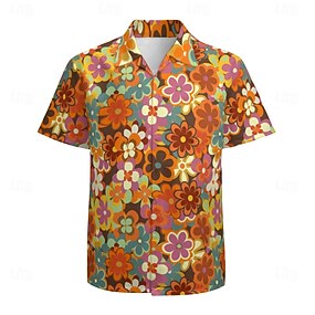 Rétro Vintage Années 1970 Chemise Chemise Aloha Hippie Fleuri Déguisement Homme Vacances Soirée Défilé de la Fierté Adulte Chemise