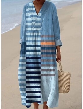 Femmes Robe maxi Robe fourreau Robe d'Été Vacances Occasionnel Plage Sortir Coupe Ample Graphique Géométrique Abstrait manche longue Col en V Bleu Jaune clair Blanc Ecru Beige Été Printemps