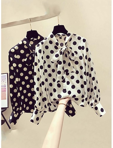 Femmes Chemise Chemisier Nœud devant À pois Actif Élégant manche longue Col ras du cou Hauts Réguliers Quotidien Fête Sortir Noir Beige Été Printemps