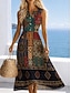 Femmes Robe maxi Robe bohème Robe fourreau Robe d'Été Robe de Plage Bohème Vacances Ethnique Plage Fête Date Coupe régulière Graphique Abstrait Manche 3/4 Col en V Orange Été Printemps