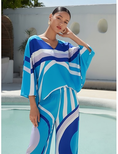 Femmes Hauts assortis Chemises ponchos Carreaux / Rayé / Chevron / Rond Vacances Tenue quotidienne Manche Magyar Multi Couleur Imprimé Géométrique Lustre Manches 3/4 Chaussures de plage Col en V
