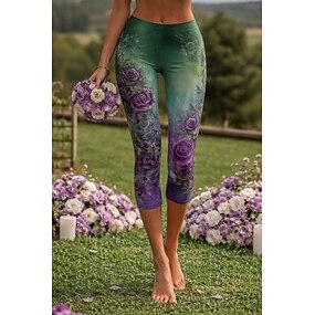 Femmes Pantalon capri Chinos Leggings Vacances ancien Streetwear Longueur mollet Taille haute Fleuri Graphique Impression Confort Doux Confortable Élastique Quotidien Extérieur Vacances Violet Ét