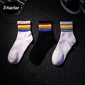 Homme 3 paquet Paquets multiples Chaussettes Chaussettes de Course Chaussettes décontractées Blanc + Blanc + Noir Noir Couleur à imprimé arc-en-ciel Sport & Loisir du quotidien Vacances Basique Moyen