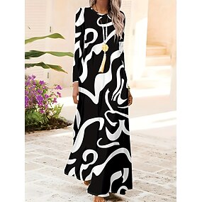 Femmes Robe maxi Robe trapèze Robe d'été Vacances Occasionnel Quotidien Coupe régulière Graphique Géométrique manche longue Col ras du cou Vert foncé Noir Blanche Marron Printemps Automne Hiver