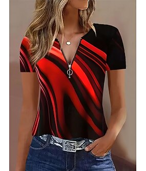 Femmes T-shirt Bloc de Couleur Quart de zip Graphique Géométrique Tropical Mode Hawaïen Manche Courte Col ras du cou Hauts Réguliers Mariage à la plage Quotidien Sports Jaune Rouge Été Printemps