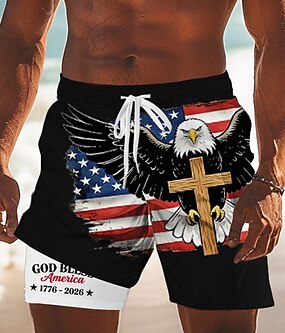 Homme 4 juillet, 250e anniversaire des États-Unis Aigle Drapeau américain Short doublé Short de bain 2 en 1 Shorts de bain Taille Moyenne Patriotique Fête Poches Latérales Avec doublure de