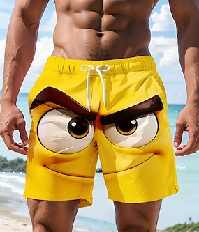Homme Dessin Animé 3D Visage Souriant Gros yeux Maillots de bain Shorts de bain Shorts de Surf Taille Moyenne Drôle Extérieur Vacances Tenue Quotidienne Poches Latérales doublure en maille Taille
