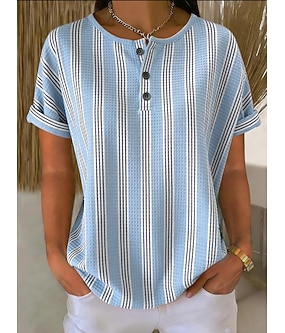 Femmes T-shirt Quart de zip Graphique Géométrique Rayé Tropical Hawaïen Élégant Manche Courte Col ras du cou Hauts Réguliers Mariage à la plage Quotidien Sports bleu marine Été Printemps