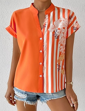 Femmes Chemise Chemisier Patchwork Graphique Bloc de Couleur ancien Élégant Manche Courte Col en V Hauts Réguliers Quotidien Fête Sortir Bleu Noir Blanche Rose Claire Rouge Été Printemps