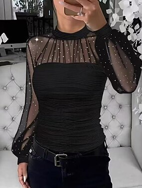 Femmes Chemise Elegant Chemisier Hauts Élégants Paillettes Ourlet asymétrique Uni Actif Élégant manche longue Col en V Hauts Réguliers Fête Sortir Noir Vin Automne Hiver