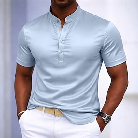 Homme Chemise Chemise popover Chemise Décontractée Bleu Noir Vert Claire Rouge bleu marine Manche Courte Uni Henley Occasionnel Quotidien Cordon de serrage Vêtement Tenue Élégant Mode Occasionnel