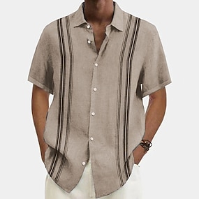 Homme Chemise Chemise Décontractée Chemise Boutonnée Noir Blanche Kaki Gris Claire Gris foncé Manche Courte Rayé Col de chemise Occasionnel Quotidien Patchwork Vêtement Tenue Bohème Mode Occasionnel