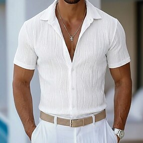 Homme Chemise Chemise gaufrée Texture Chemise Décontractée Chemise Boutonnée Bleu Noir Blanche Rose Claire Kaki Manche Courte Uni Revers Occasionnel Quotidien Vêtement Tenue Mode Moderne Occasionnel