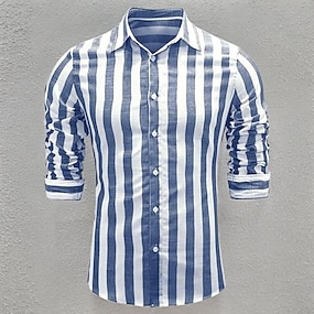 Homme Chemise Chemise en lin Chemise Décontractée Chemise en coton Chemises à rayures Rayures Vacances Hawaïen Jaune Rouge bleu marine Bleu manche longue Revers Printemps & Automne Vêtement Tenue