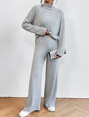 Femmes Mode Streetwear Survêtement Ensembles de Pantalons manche longue Col montant Uni Tenue quotidienne Date Noir Rouge Bordeaux Gris Printemps & Automne Coupe régulière