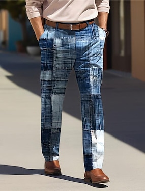 Homme Impression 3D Dress Pants works Taille Moyenne Mode Occasionnel Formel Tenue Quotidienne Fermeture éclair Avec Poches Été Printemps Automne Impression 3D Bleu