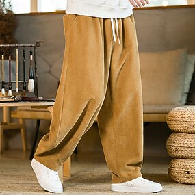 Homme Pantalon en velours côtelé Pantalons Pantalon décontracté Avec Poches Taille Élastique Cordon de serrage Uni Confort Extérieur Quotidien Mode Occasionnel Noir Jaune Micro-Élastique