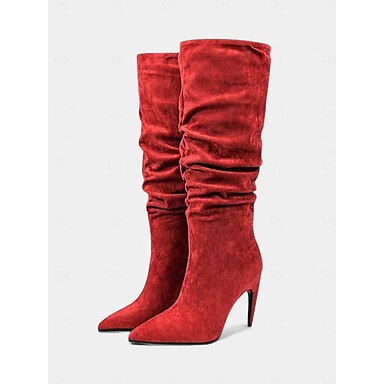 Femmes Bottes Soirée Plateau Compensé Bout Pointu Mode Sexy Faux Cuir Fermeture éclair Rouge