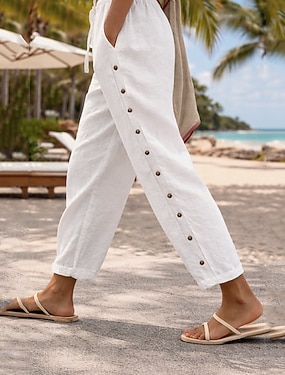 Femmes Coton Pantalons Pantalon d'été Pantalons de Plage Vacances Mode Décontracté Quotidien Longueur cheville Taille haute Uni Taille Élastique Bouton latéral Léger Confortable Respirant Non