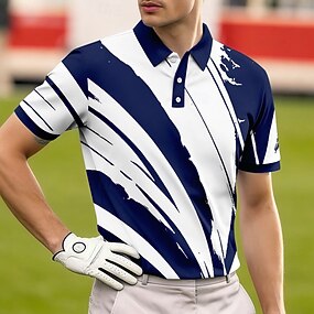 Homme Géométrique Golf Polos de Sport Manche Courte Polos Chemises à Col Occasionnel Athleisure Boutons Maille Respirante Printemps & Été Bleu Violet Vert