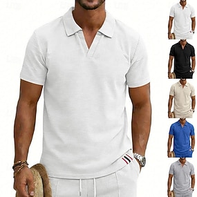 Homme Chemises Polo Gaufre Texturé Affaires Occasionnel Col en V Manche Courte Mode Basique Couleur Unie Boutons Été Printemps & Automne Coupe régulière Noir Blanche Bleu Roi Gris clair Beige