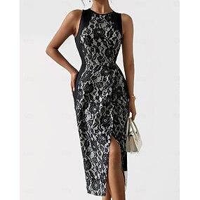 Femmes Robe Midi Robe noire Robe de Cocktail Robe de Cérémonie Robe fourreau Élégant robe demoiselle d honneur Cocktail Coupe régulière Uni Sans manches Col ras du cou Noir Été