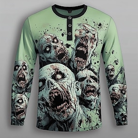 Homme Zombies Chemise Henley manche longue Mode Mignon Quotidien Occasionnel Fête Sortir Printemps Automne Printemps & Automne Bleu Vert Violet Kaki Henley T-shirt Henley