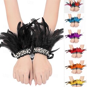 Carnaval 2026 Manchettes en Plumes pour Femmes Manches en Paillettes et Plumes Multicolores pour Danse au Brésil