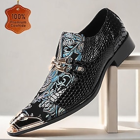 mocassins en cuir à imprimé floral pour hommes – chaussures habillées à enfiler en cuir de vachette de qualité supérieure avec chaîne en métal et embout brillant pour les fêtes et les occasions formelles