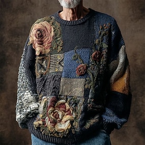 Homme Pull Pull Tricoté Côtelé Tricoter Hauts Réguliers Tricoté Imprimé Imprimé Floral Col ras du cou ancien Rustique Vacances Tenue quotidienne Vêtement Tenue Automne Hiver Marron S M L