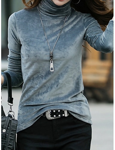 Blouse en Velours pour Femmes Hauts Élégants Hauts Serrés Élégante Stylée Chic Manche Longue Col Roulé Hauts Réguliers Noir Printemps Automne Hiver Printemps Automne Hiver Été