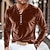 Homme T-shirt manche longue Henley Été Printemps Automne Uni Moderne Occasionnel Confortable Boutons Basique Maison Rue Occasionnel Vin bleu marine Marron T-shirt haut de gamme pour homme