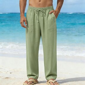 Homme Pantalons en Lin Pantalons Pantalon d'été Pantalons de Plage Cordon de serrage Taille Élastique Jambe Droite Uni Léger Respirant Longueur complète Occasionnel Quotidien Fête Vacances Mode Kaki
