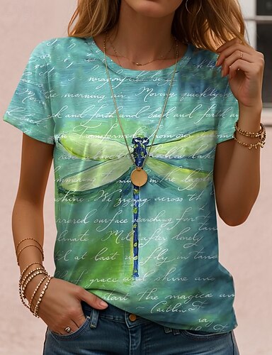 Femmes T-shirt Imprimé Graphique Animal ancien Élégant Classique Manche Courte Col ras du cou Hauts Réguliers Quotidien Week-end Bleu Blanche Violet Vert Kaki Été Printemps