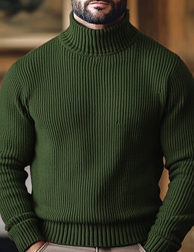 Homme Chandails de Noël Pull à col roulé Pull Pullover A côtes Tricoter Tricoté Plein Col Roulé Garder au chaud Décontractées Extérieur Usage quotidien Vêtement Tenue Automne hiver Vin Noir M L XL