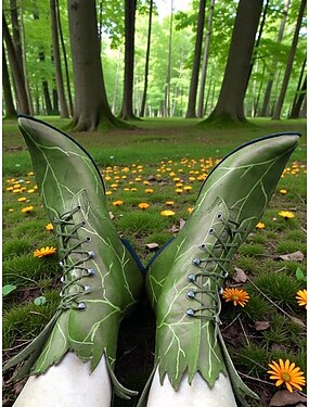 Bottes de fée en feuilles pour femmes chaussures vertes pointues à lacets avec détails en feuilles idéales pour le carnaval les costumes de Mardi Gras le cosplay de fée et les fêtes sur le thème de