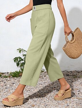 Femmes Pantalon en coton et lin Jambe large Pantalon d'été Pantalons Amples Vacances Uni Longueur complète Taille Moyenne Taille Élastique in in france they say Pontalon wide leg Bouffant Confort