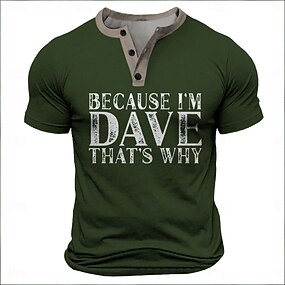 T-shirt pour hommes avec "Parce que je suis Dave c'est pourquoi" T-shirt graphique amusant design Lifestyle à manches courtes Henley