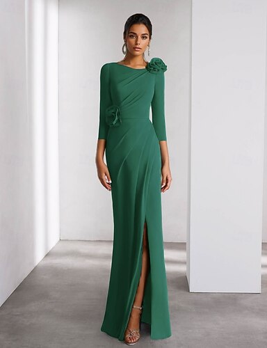 Robe Cocktail Fourreau Colonne Élégante Robe Formelle Mariage Longueur Cheville Manches 3/4 Décolleté Rond Crêpe Extensible avec Fente