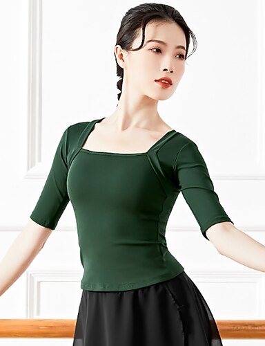 Tenues de Sport Haut Couleur Pure Femme Utilisation Entraînement Demi Manches Taille haute Mélange de Coton