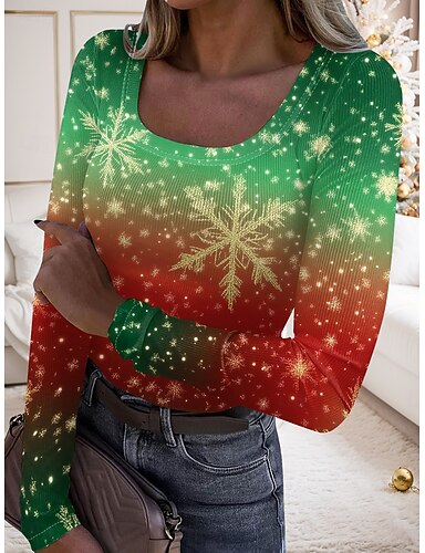 Noël Femmes Tunique Graphique Arbre de Noël ancien Mode Élégant manche longue Col carré Hauts Réguliers Quotidien Imprimé Rouge Marron Vert Kaki Automne Hiver