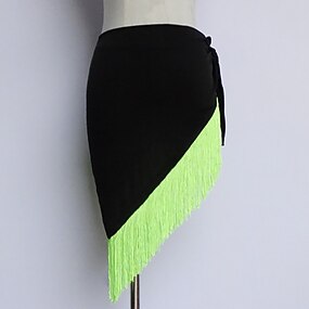 Jupes de danse latine de danse du ventre, franges à franges, épissage de couleur pure, performance d'entraînement pour femmes, spandex élevé