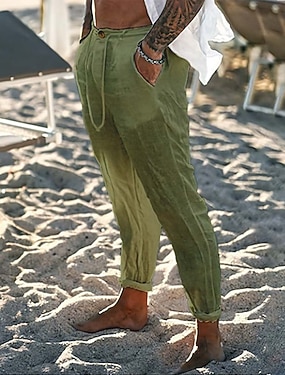 Homme Pantalon en lin Pantalon pantalon été Pantalon de plage Poche Cordon Taille elastique Plein Confort Respirable du quotidien Vacances Plage Hawaïen Bohème Blanche Vert