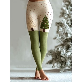 Femmes Leggings Vacances ancien Mode Longueur complète Taille hautePantsNoël Graphique Noël Impression Chaleur Thermique Doux Respirant Élastique Formel Extérieur Vacances Bleu Vert Été Printemps
